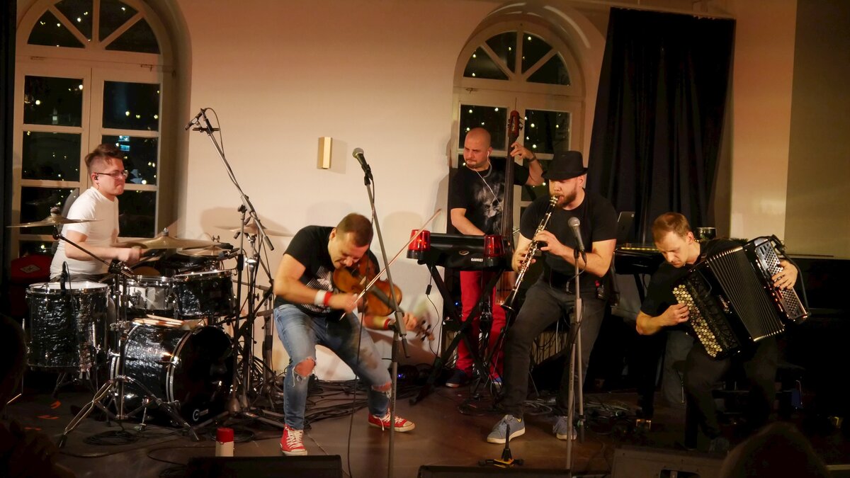 Das Quintett „Klezmafour“ vereint Musiktraditionen aus Ost-, West- und Südeuropa. Klassische Klezmer-Klänge der Klarinette treffen auf hitzige Balkan-Beats von Bass und Schlagzeug – angefeuert von Akkordeon und Violine. Die fünf Musiker sind allesamt Absolventen der Fryderyk-Chopin-Musikuniversität Warschau. Mit wilden Titeln verstanden sie es, das Publikum zum Kochen zu bringen, ohne dabei die Tradition der jüdischen Musik aus den Augen zu verlieren. Das Konzert fand in der Kulturschranne Dachau statt.