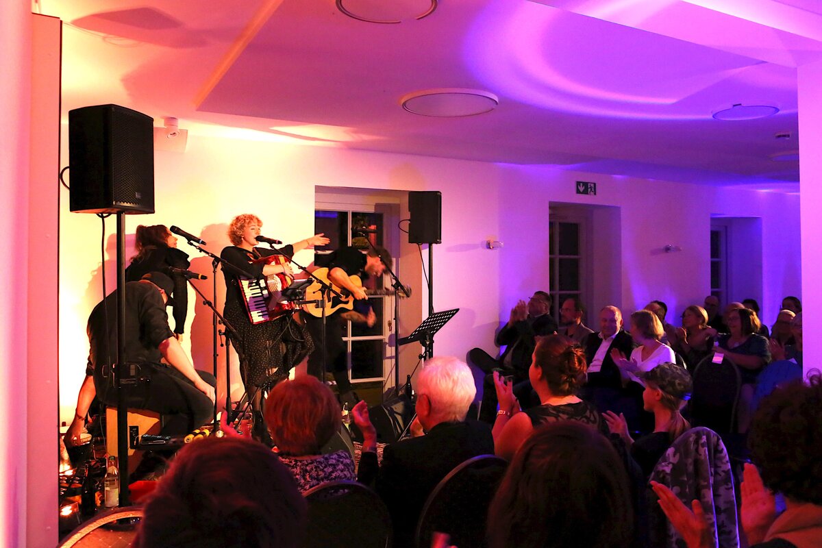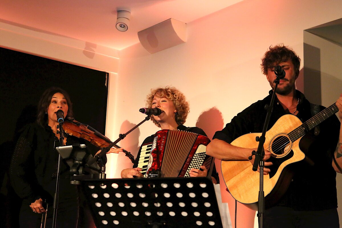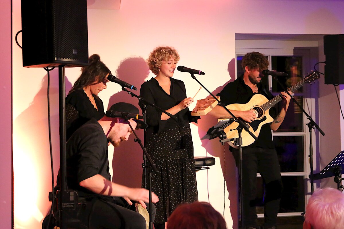 Die Dachauer Gruppe Garou Constanze Miller (Akkordeon, Gesang), Kathrin Birkeneder (Geige, Gesang), Marcus Steinlechner (Gitarre, Gesang) und Anton Männlein (Percussion, Gesang) verzauberte das Publikum mit ihren Instrumenten und ihren Stimmen. Gefühlvolle Coversongs mit überraschenden Neuinterpretationen bekannter Stücke („Pina Colada-Song“) bescherten den Besucher:innen sowohl ausgelassene als auch unter die Haut gehende Momente: ein gelungener Abend voller guter Laune und tiefen Gefühlen.