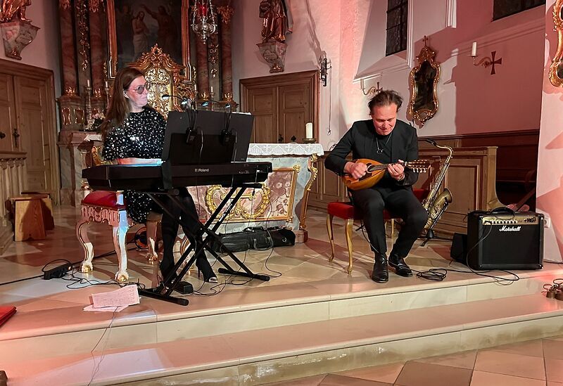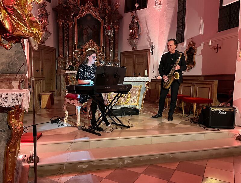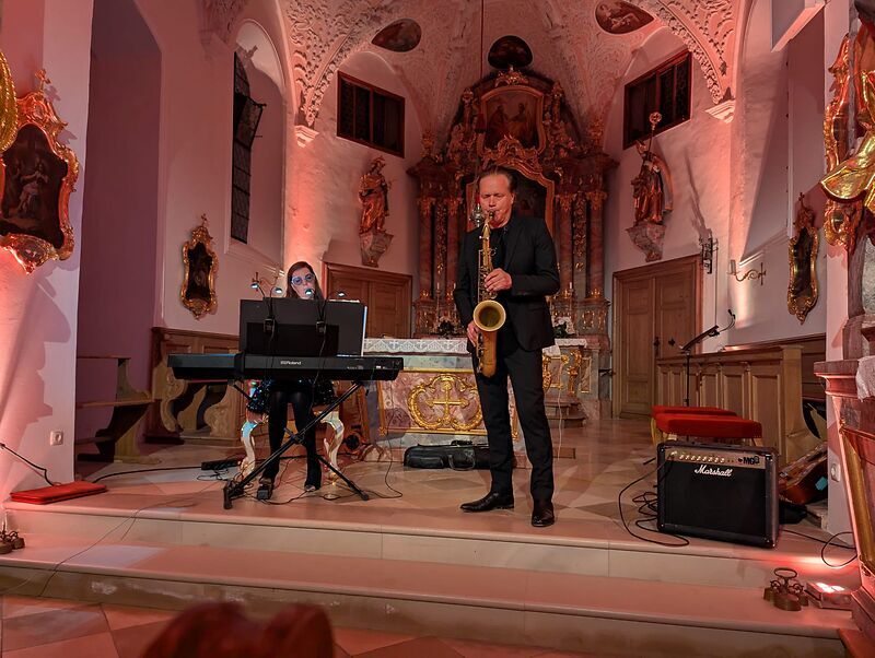 In der atmosphärisch beleuchteten Kirche von Sulzemoos verzauberten die bekannten Musiker Nicole Heartseeker (Piano) und Mulo Francel (Saxophon) ihr Publikum mit Melodien über die Liebe – und ließen dabei Sehnsuchtsbilder aufleben. Die gefühlvollen Klänge weckten Erinnerungen an Italien und luden zum Träumen ein. Einen besonderen Höhepunkt des Abends bildeten zwei Stücke, bei denen Nicole Heartseeker an der Orgel spielte, begleitet von Mulo Francel am Saxophon.