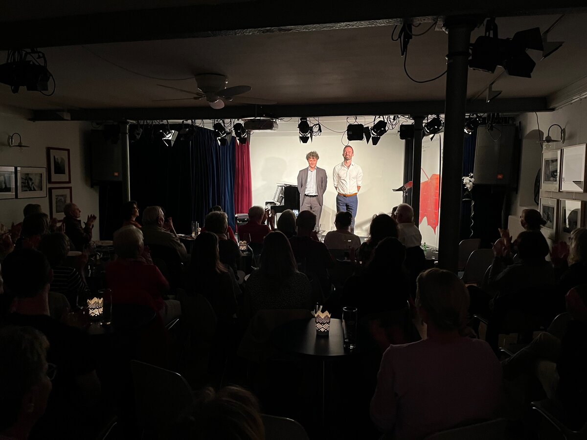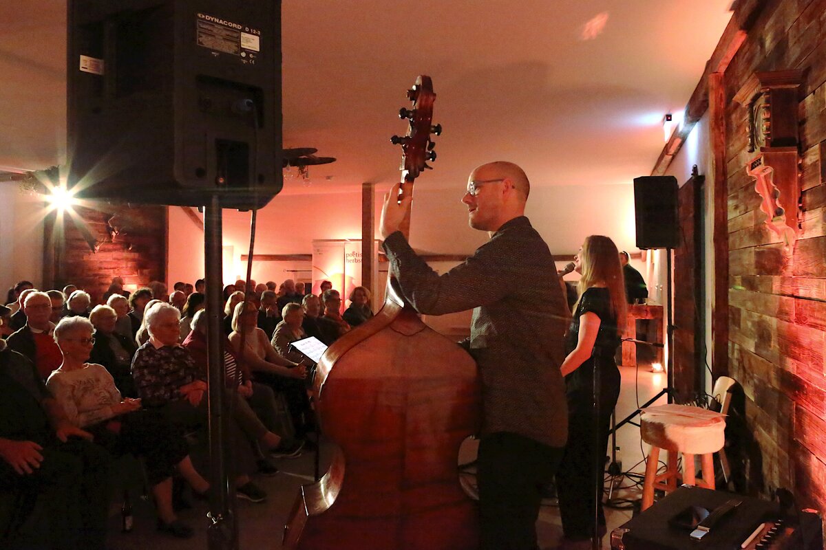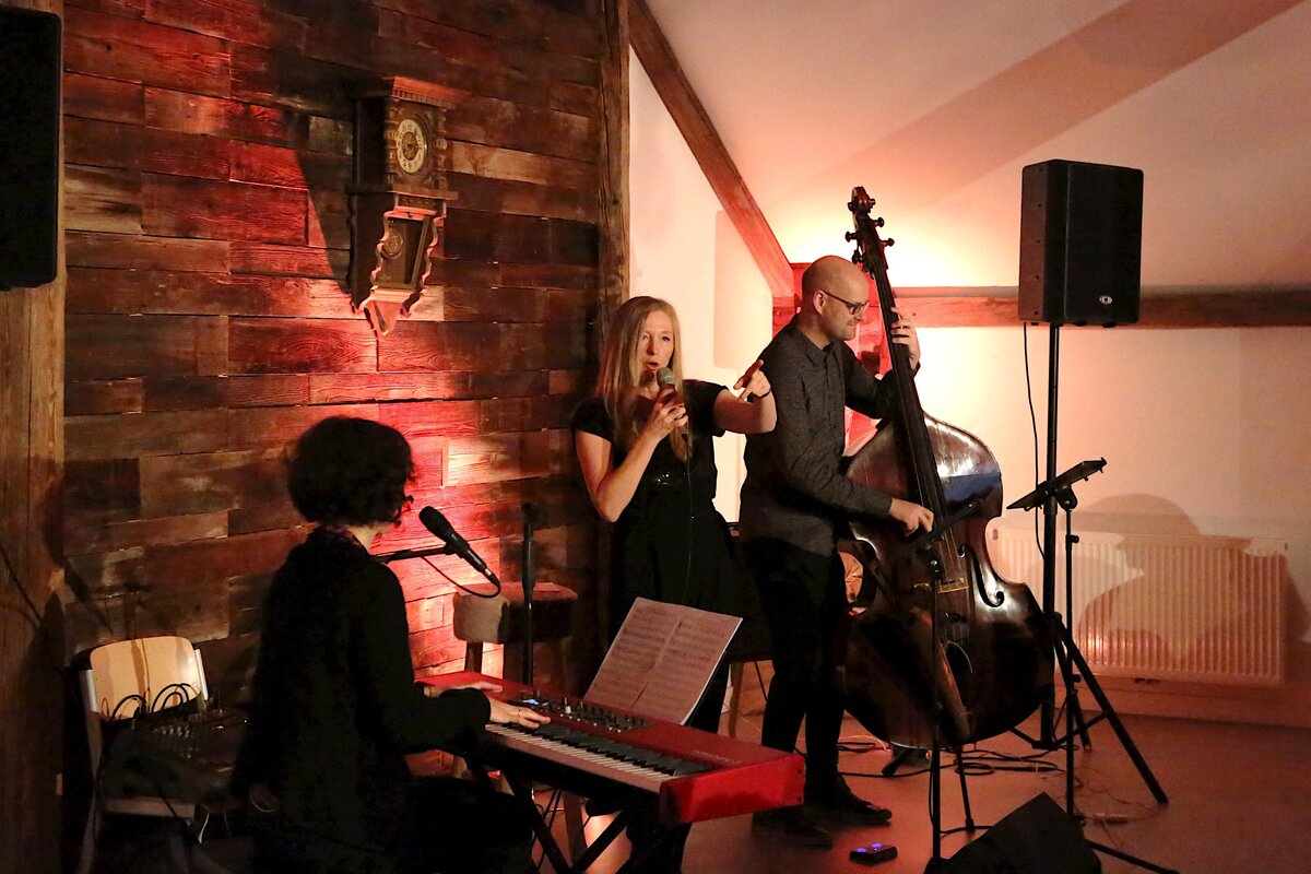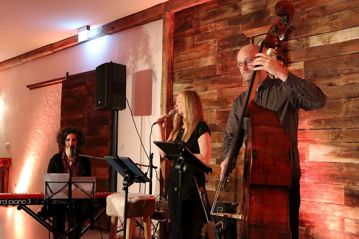 Lisa Wahlandt (Gesang) und Andrea Hermenau (Gesang und Piano) bilden zusammen mit dem Bassisten Sven Faller das „Lisa Wahlandt Trio“. Gekonnt spannten die drei Musiker:innen den Bogen von bayrischem Liedgut zu bekannten Popmelodien, swingenden Jazzarrangements und Chansons in verschiedenen Sprachen. Ein wahrer Ohrenschmaus, zu dem nicht nur die Stimmen der Sänger, sondern auch ihre instrumentalen Soli am Piano und am Bass beitrugen. In der ausverkauften Veranstaltung in der Kaltmühle kam an diesem Abend Jazzclub-Atmosphäre auf, die die Besucher:innen im Weiler zwischen Haimhausen und Hebertshausen sichtlich genossen.