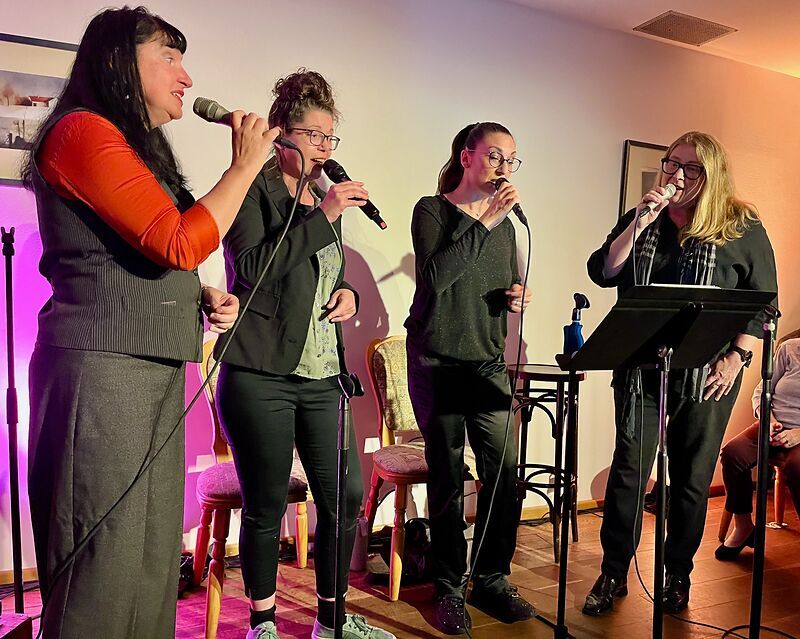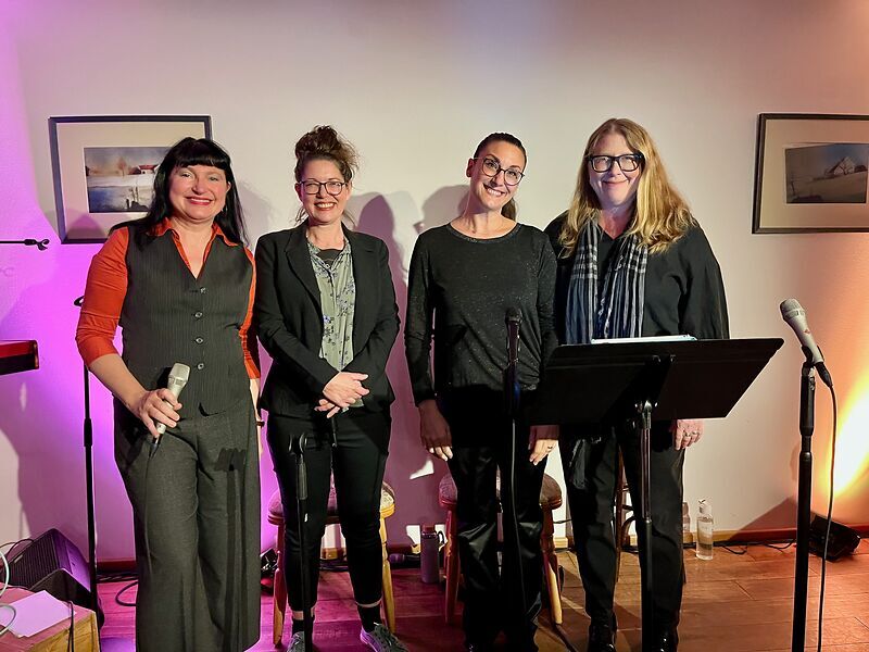 „Der Kuss, der auf dem Mund dir lag …“ – diese poetische Zeile von Else Lasker-Schüler war der Titel eines Abends voller musikalischer Überraschungen und literarischer Entdeckungen. Ute Korell, Alexandra Fischer, Anna Hermann und Heida Lehndorfer präsentierten musikalische Schmankerl von Pop über Jazz bis hin zu Chansons und Wiener Liedern – charmant und mit einem Augenzwinkern, mal a cappella, mal begleitet vom Klavier.
