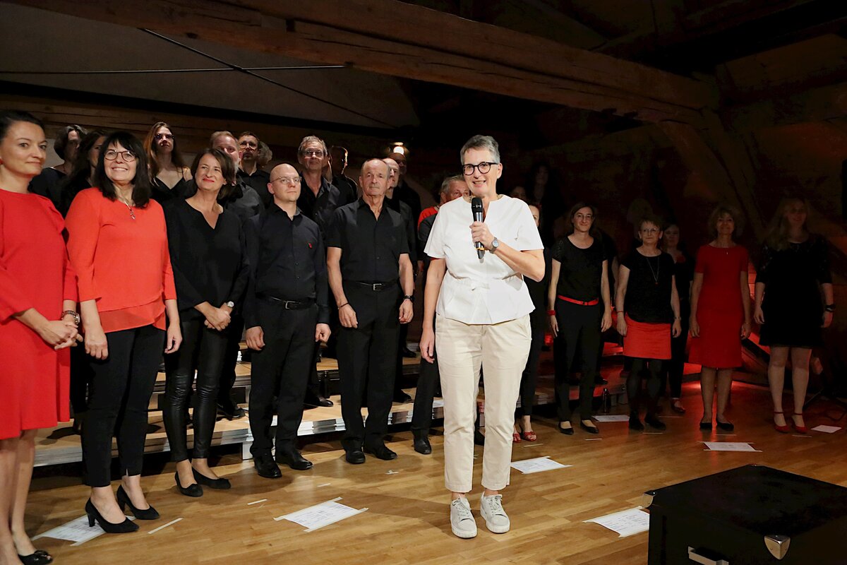 Im Tafernsaal des Wirtshauses am Erdweg sangen sich die 40 Mitglieder des Abensberger Chors schnell in die Herzen der Zuschauer. Von „Imagine“, der gefühlvollen Ballade aus der Feder John Lennons über ein Udo Jürgens-Medley bis hin zu den Hits der 90er mit Queen-Kompositionen („Don´t stop me now“) reichte dabei die Bandbreite. Besonders begeisterten die Zuhörer die fantasievollen Arrangements der Songs, bei denen zum Teil mehrere Hits zusammen ein buntes und stimmiges Klangbild ergaben. Launige Moderationen umrahmten die Darbietungen, die von Chorleiterin Vroni Bertsch und ihren Sänger:innen mit viel Engagement, Herz und sichtbarer Freude am Gesang dargeboten wurden.